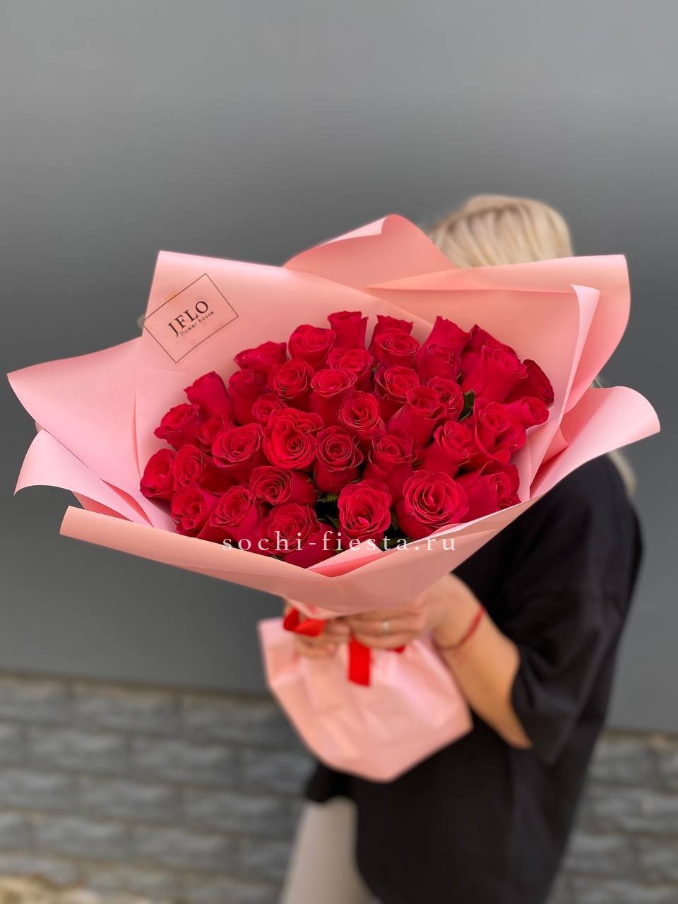 101 кустовая пионовидная роза, лента, дизайнерская упаковка.