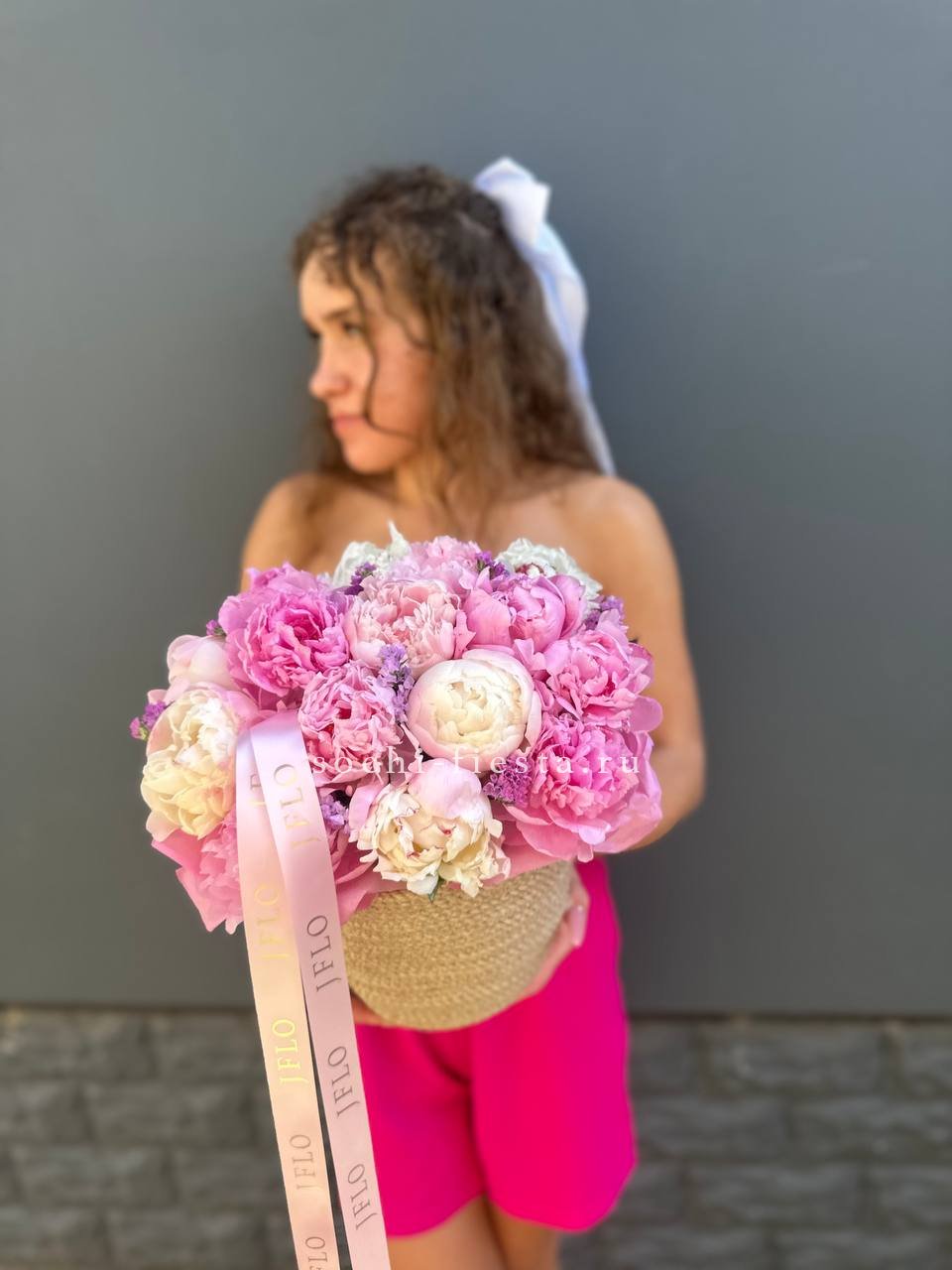 15 пионов в джутовом кашпо