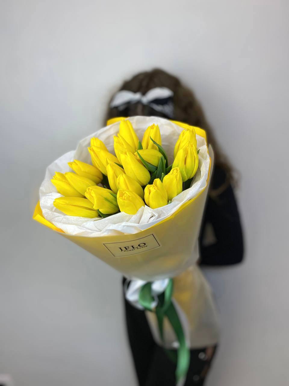 Бутоны держат форму долго и радуют свежестью. Девятнадцать жёлтых тюльпанов в лаконичной упаковке удобны для размещения в любом интерьере.