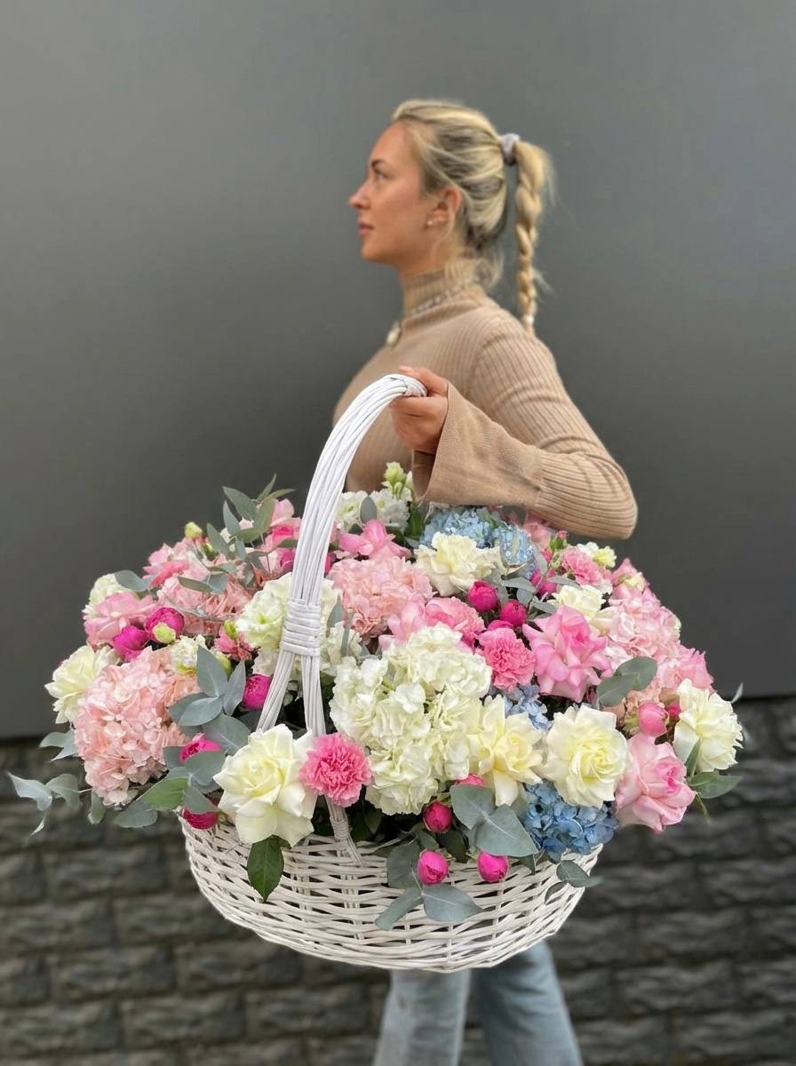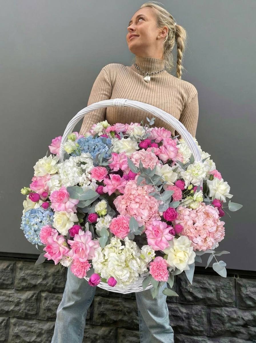 гортензия- 29 шт., дизайнерское оформление По желанию заказчика, композицию можно оформить в корзину.