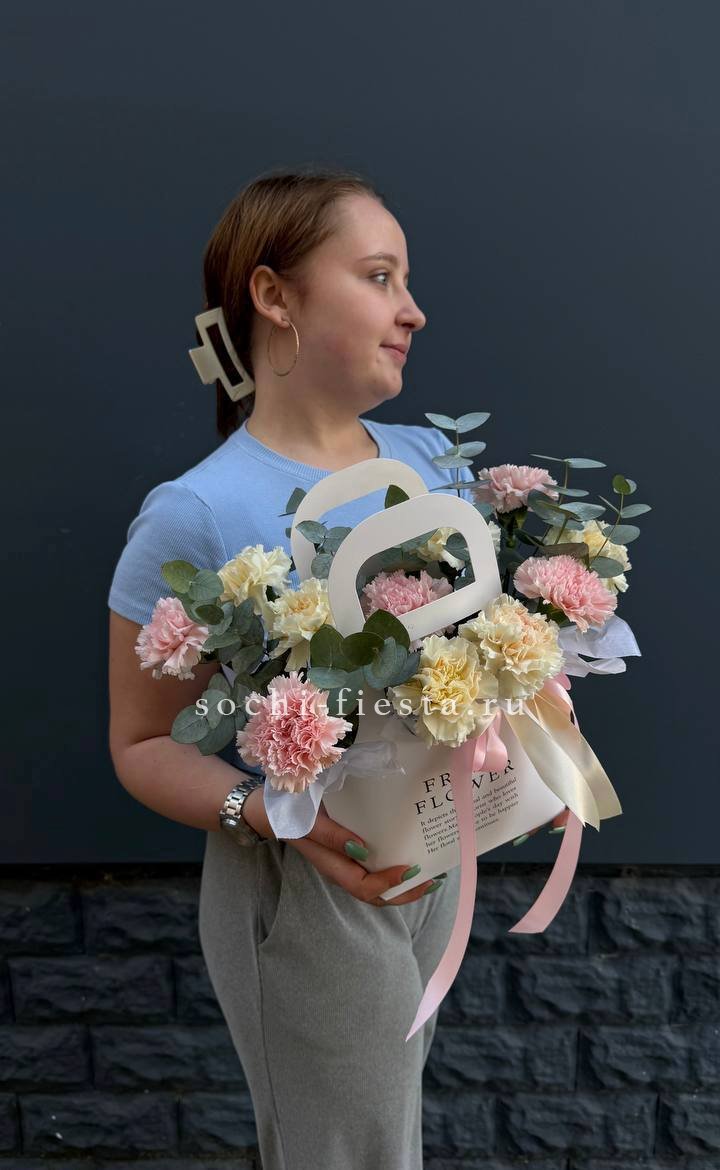 диантус - 21 шт., лента, крафт или дизайнерская пленка.