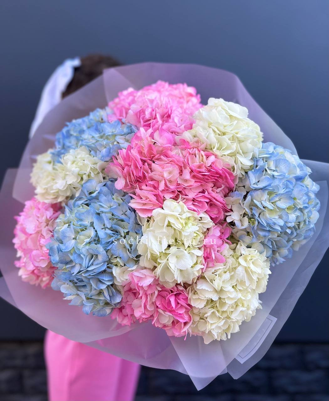 гортензия - 11 шт., лента, дизайнерская упаковка.
