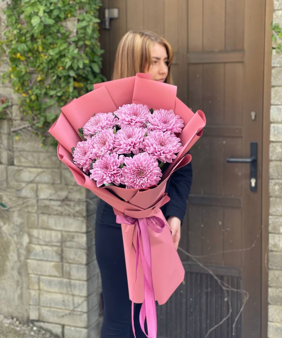 хризантема кустовая - 19 веток, лента, дизайнерская пленка.