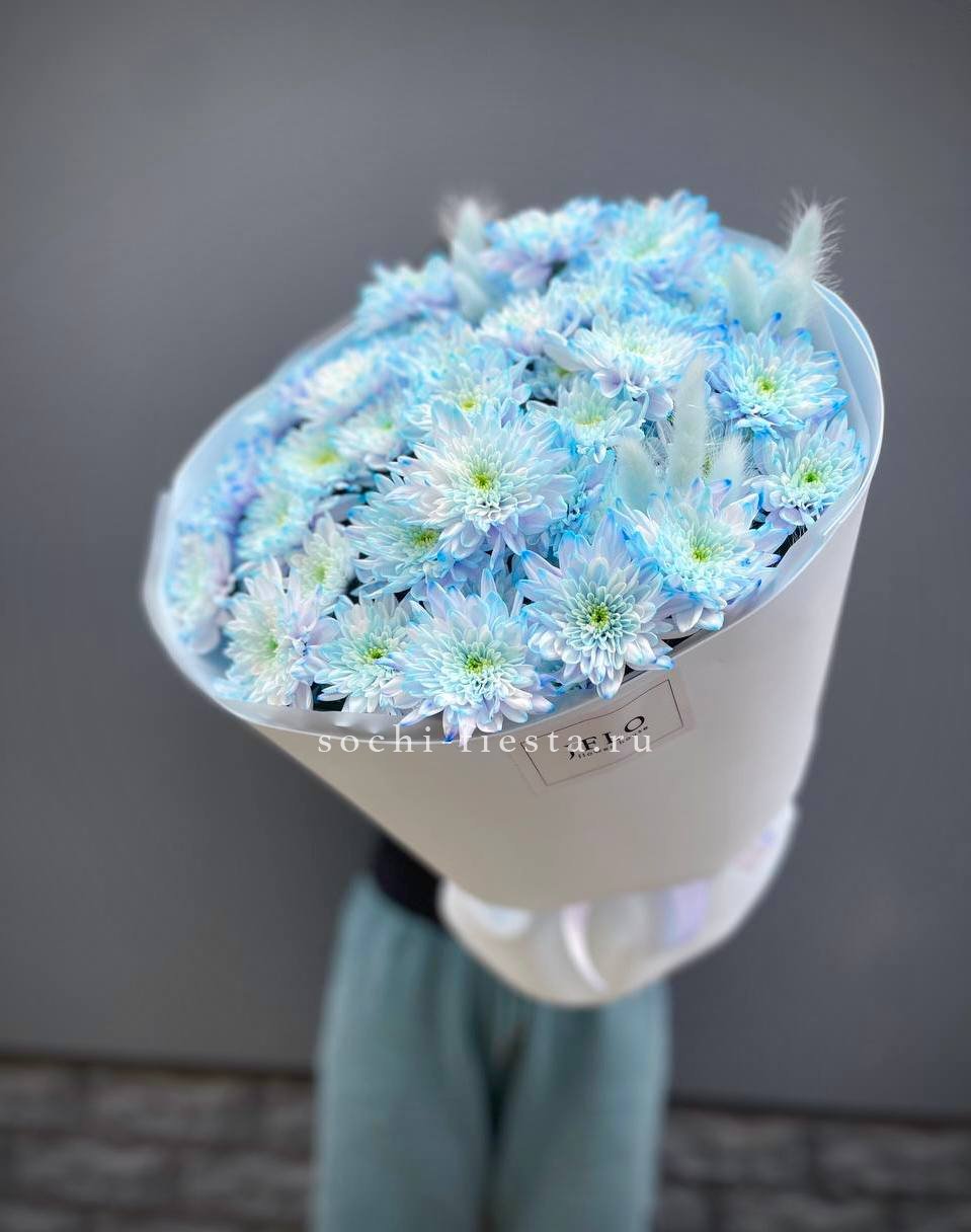 7 одноголовых хризантем, лента, упаковка.