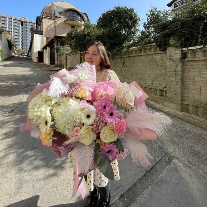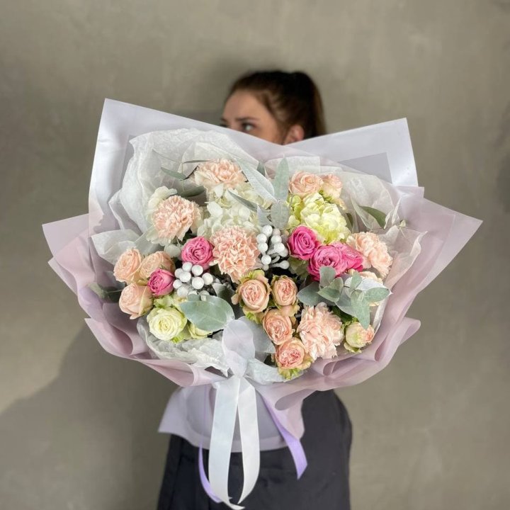 Доставка авторских букетов в Рязани — в специальной упаковке, сохраняющей форму. Самовывоз из студии — основная опция в небольшом городе: клиент приходит лично и видит работу. Флорист лично передаёт крупные свадебные работы для контроля качества и сохранности.