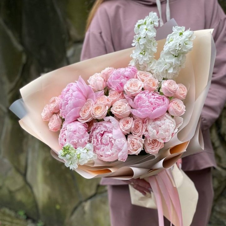 - Редкий состав — David Austin, ранункулюс, анемоны, сезонные пионы.