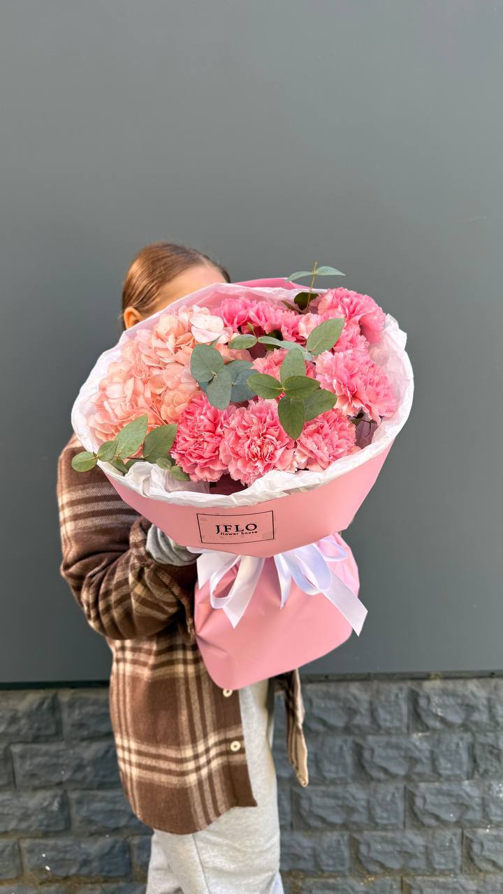 Этот авторский микс из пудровой гортензии и кружевных диантусов — идеальный подарок для тех, кто вдохновляет. Сочетание фактур и оттенков розового создает ощущение легкости и весеннего тепла. Букет, который невозможно выпустить из рук.