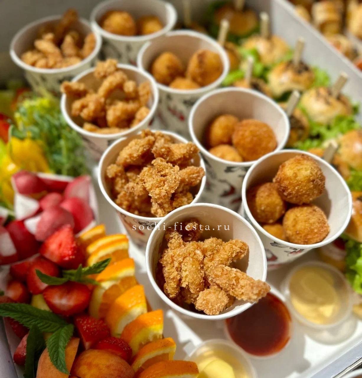Шестнадцать брускетт с мясными и рыбными начинками. Говядина с вялеными томатами, паштет из печени, семга с огурцом и карбонад с черри раскрывают богатство вкусов в одной подаче.