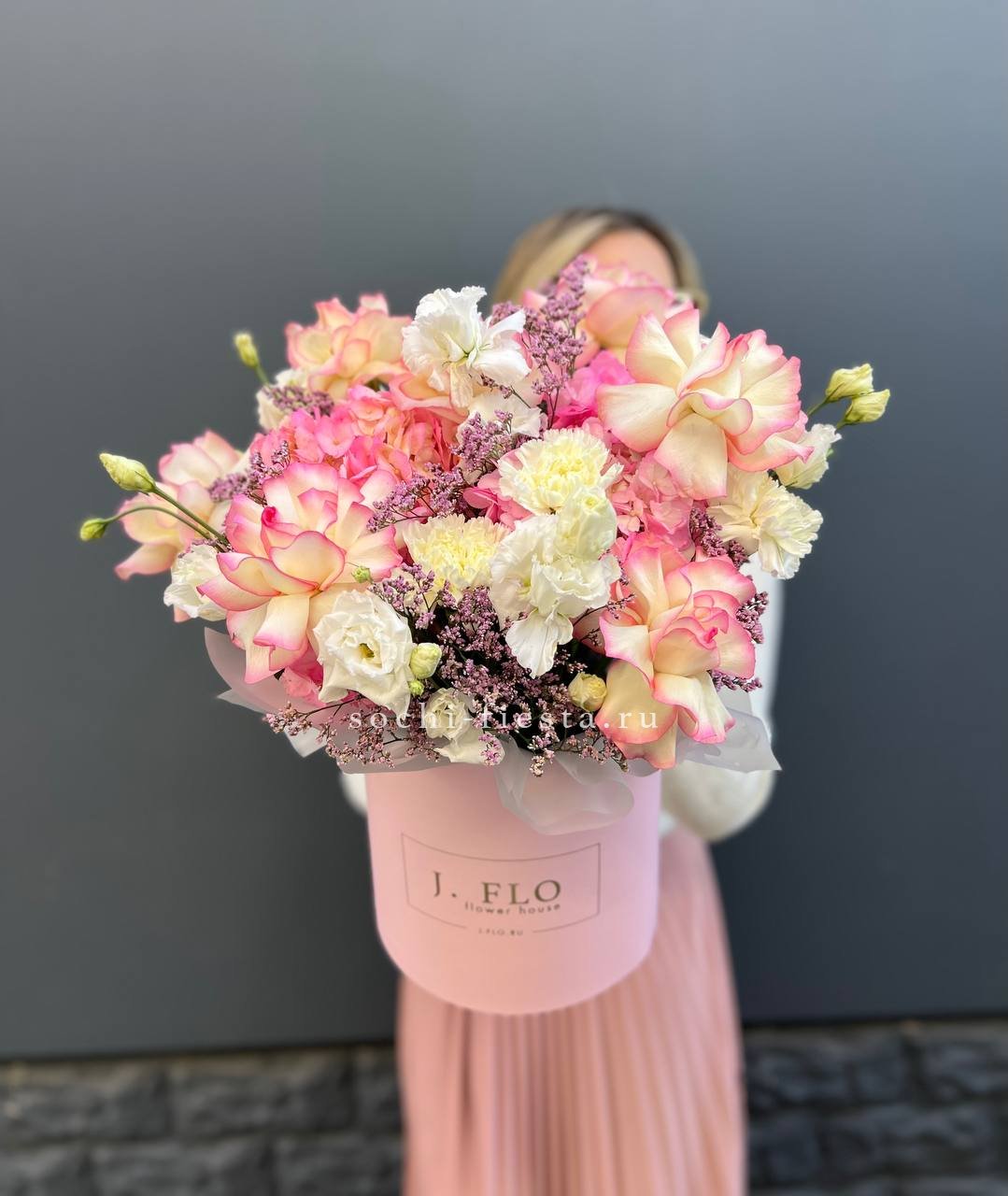 цветочная композиция в нежно-розовых тонах в  цилиндре D25.