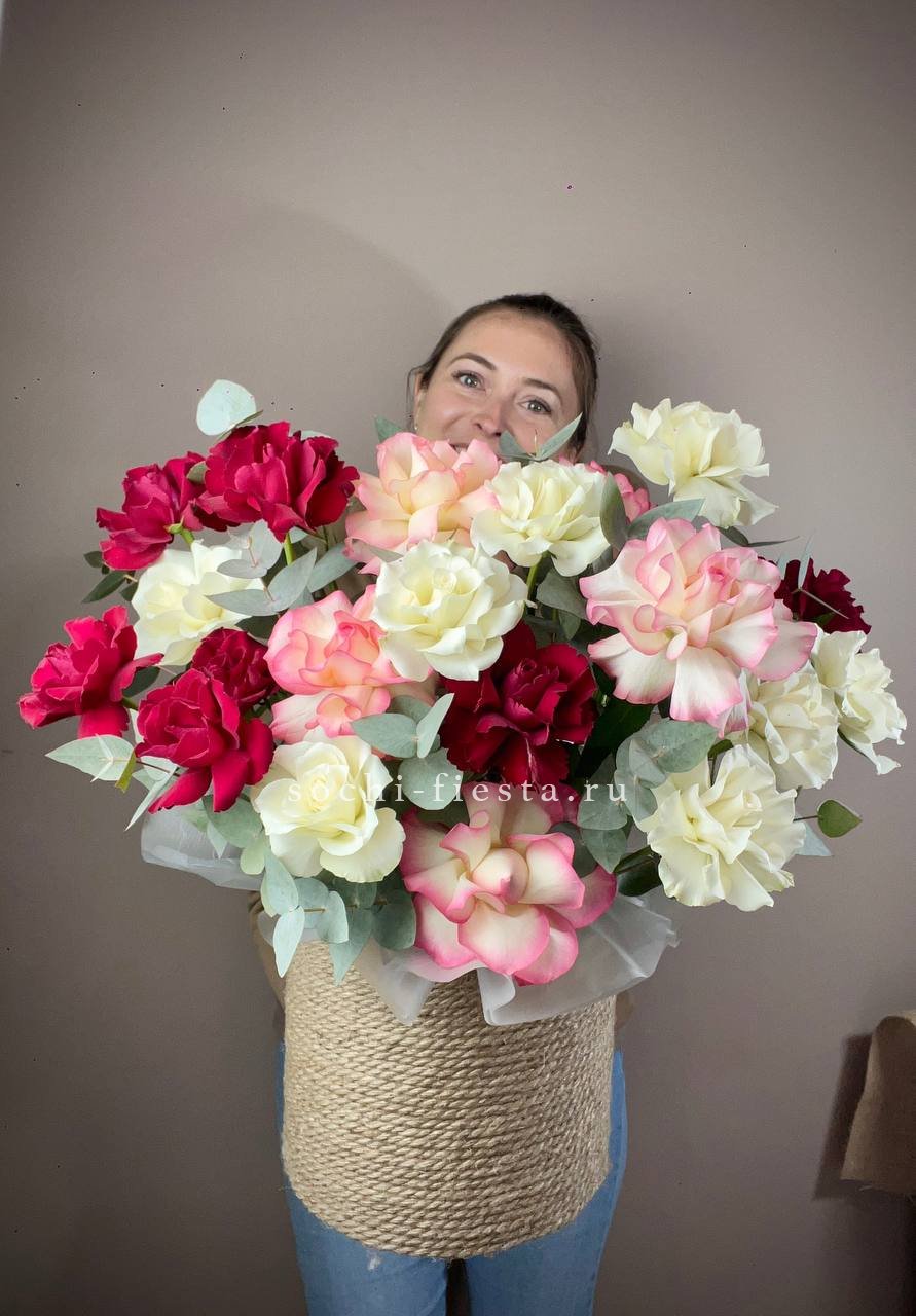 Для заказа товара "35 французских роз микс в джутовом боксе" с доставкой в Рязани нажмите в корзину