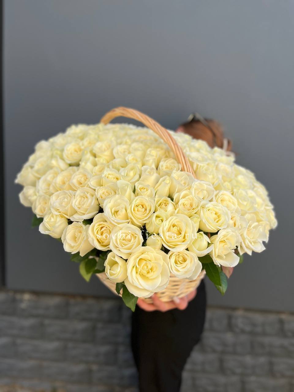 151 белая роза в корзине