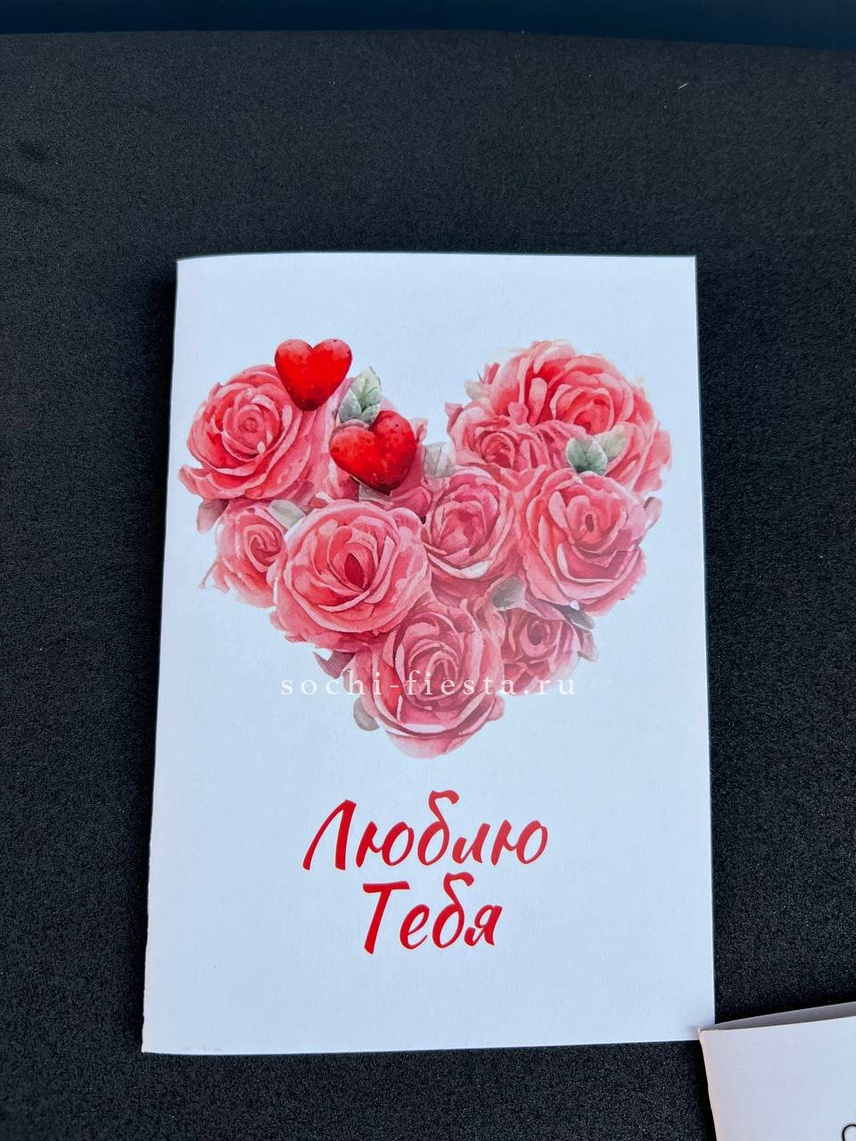 Признание в чувствах на бумаге с трогательной надписью внутри. Компактная открытка дополнит букет и сохранит теплые слова. Для тех моментов, когда важно сказать главное.