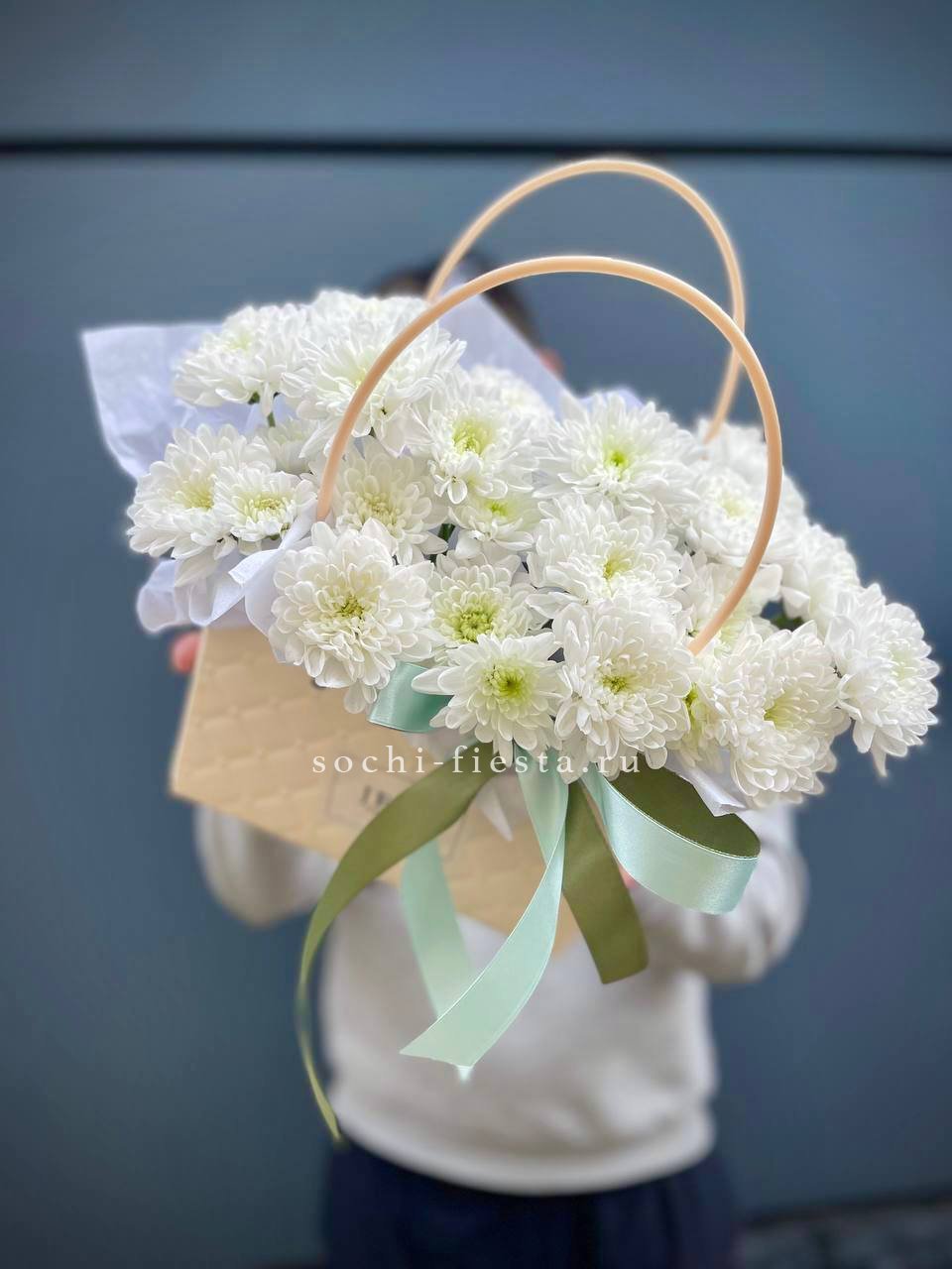 Белоснежные шапки хризантем и воздушные метелки астильбы собраны в композицию с четким вертикальным ритмом. Букет напоминает о первых школьных линейках и свежести сентябрьского утра.