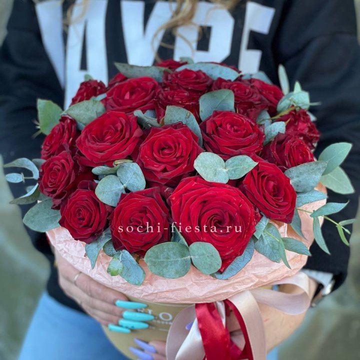 Локальные предпочтения в Рязани — классика. 15 роз на свидание и знак внимания, 25 на день рождения, 51 на юбилей, 101 на свадьбу. Длина стебля обычно 60-70 см — стандарт регионального привоза.