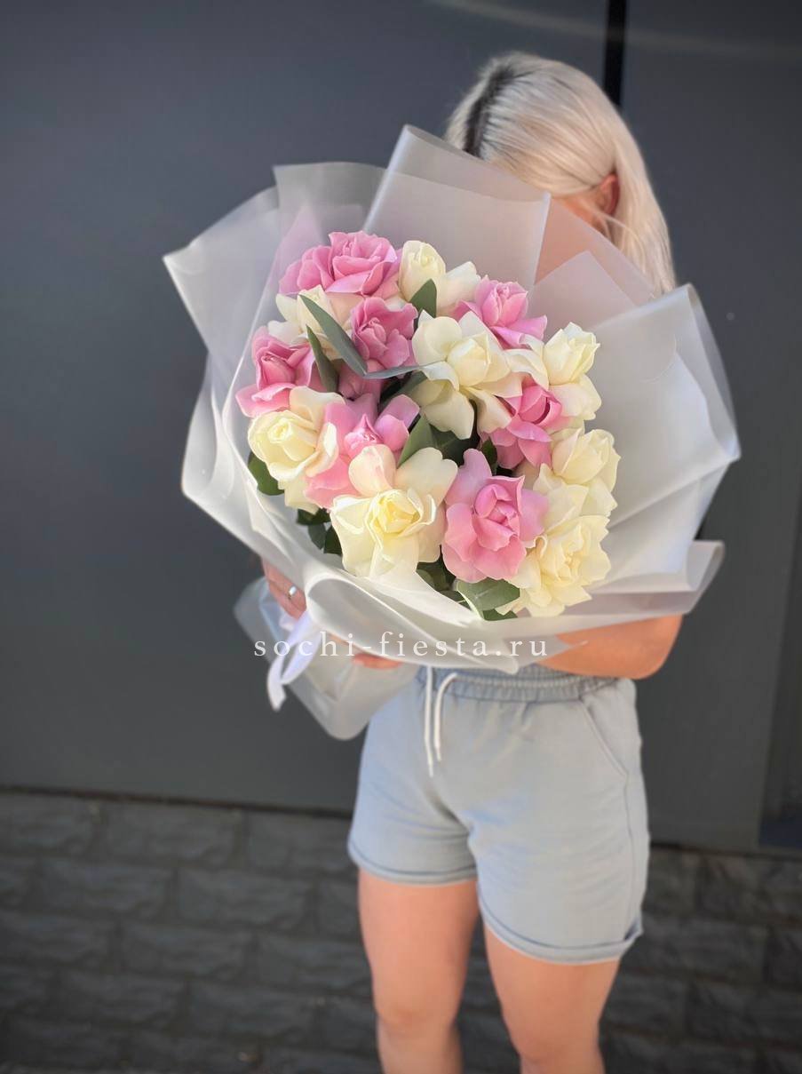 15 бело-розовых роз