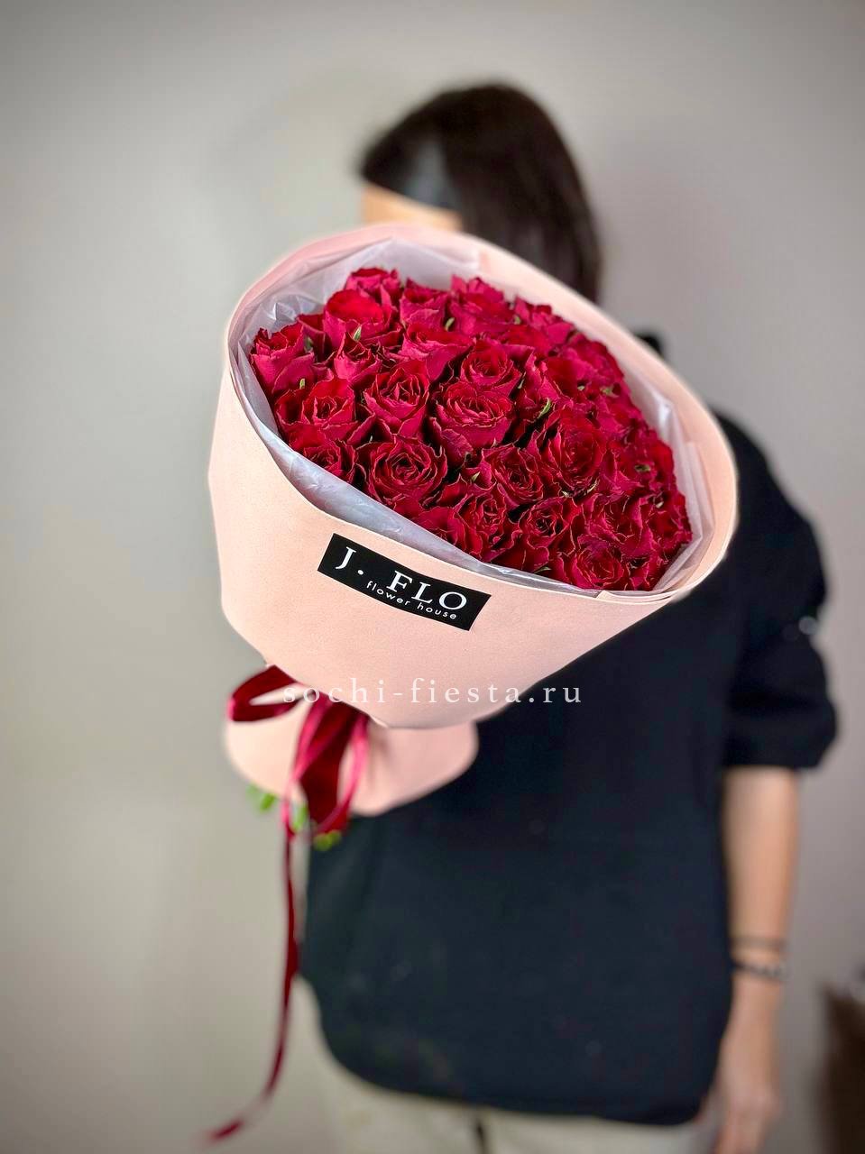 55 кенийских роз (35-40 см), лента, упаковка.
