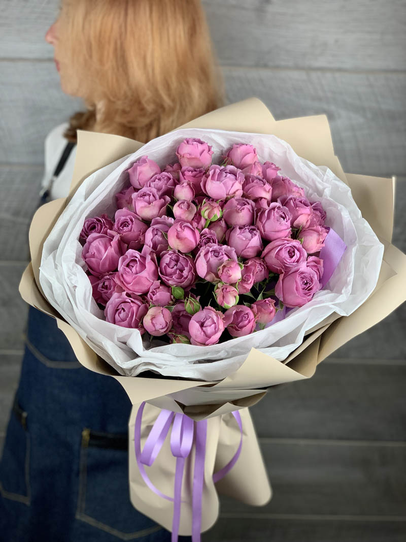 101 кустовая роза, лента, дизайнерская упаковка.