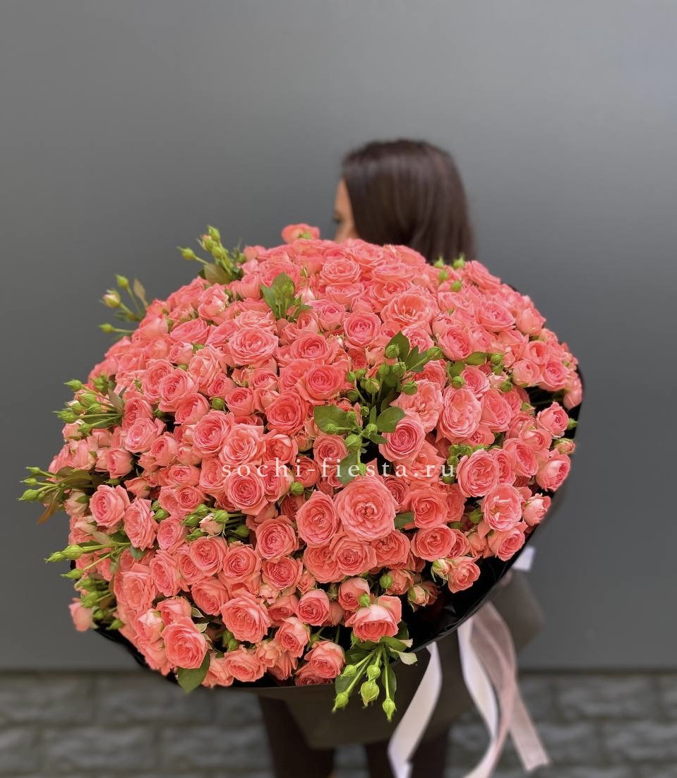 101 кустовая роза Барбадос, лента, упаковка.