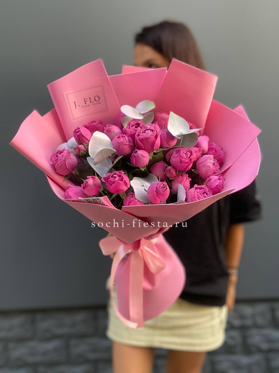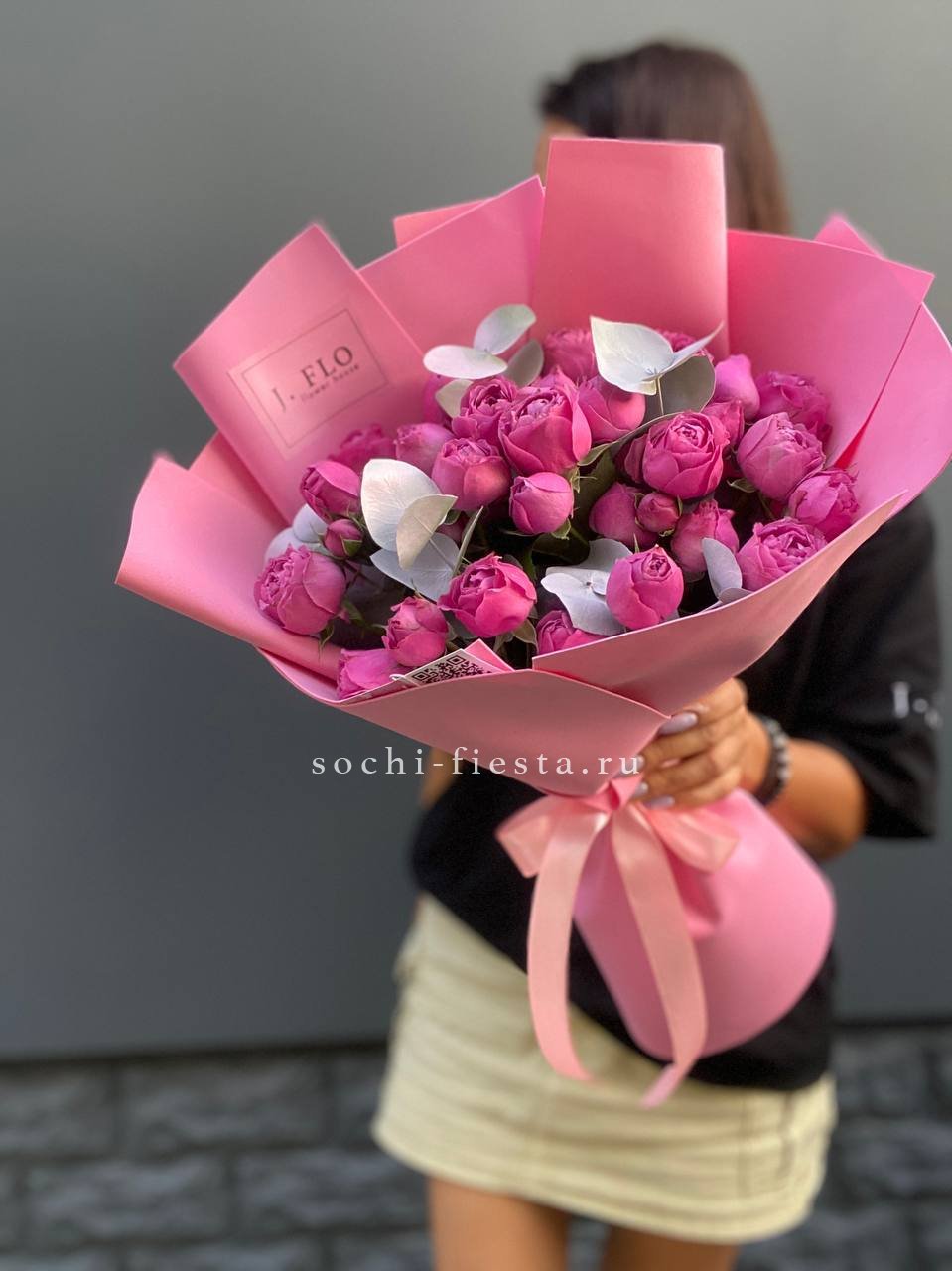 Пятнадцать веточек с множеством небольших бутонов формируют воздушную форму. Букет легко помещается в любую вазу и сохраняет свежесть долгое время благодаря природной стойкости кустовых сортов.
